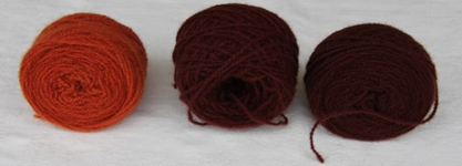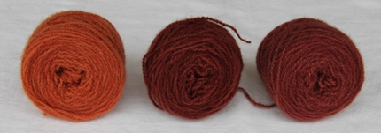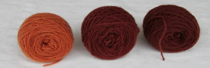 Fargingen: Soppen kokt i 15 min og silt fra. De tre beisene var samtidig i fargebadet – fargetid 15 min ved pH 5,5, og deretter lå garnet i vann av samme temperatur fargetiden ut. Garnet ble skylt og tørket.