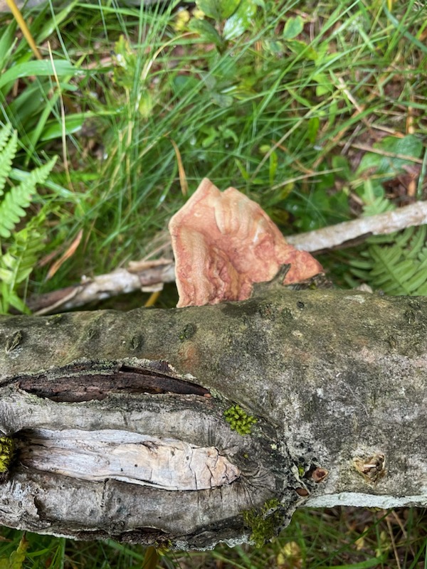 Imidlertid ble det gjort så mange fine funn av både fargesopper og matsopper underveis at tiden ble knapp. Det var piggsopper, frynsesopper, fargeslørsoppene m. m, men spesielt mye oppmerksomhet fikk kanelkjuke som det viste seg å vrimle av med en gang vi hadde fått demonstrert hvordan den vokste – på stående, råtten rogn. Gule korallsopper og svart trompetsopp gjorde også susen. Avslutningsvis fant vi knippesøtpigg som vi husket som en truet art, men som i siste utgave av rødlista (2021) blir ansett som livskraftig.