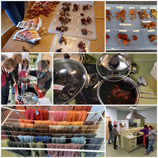 Det ble plukket mye sopp utover høsten og alle hadde med seg fargesopp til fargehelgen. I utgangspunktet var kurset planlagt og annonsert som «farg-ditt-eget-garn» kurs hvor en kunne lære å farge med minst 5 forskjellige fargesopper. Men siden deltagere plukket flere morsomme sopparter i løpet av høsten ble kurset gjort om til «vi-tester-så-mye-vi-rekker» kurs før fargehelgen. De som ville farge eget garn fikk lov til det og det ble farget garn for strikking av både votter og gensere under fargehelgen! Testfarging ble gjort på 2-tråds ubleket og ubehandlet ull, kursleder beiset testhespene med enten 15% alun + 5% vinsten eller 3% jernsulfat.