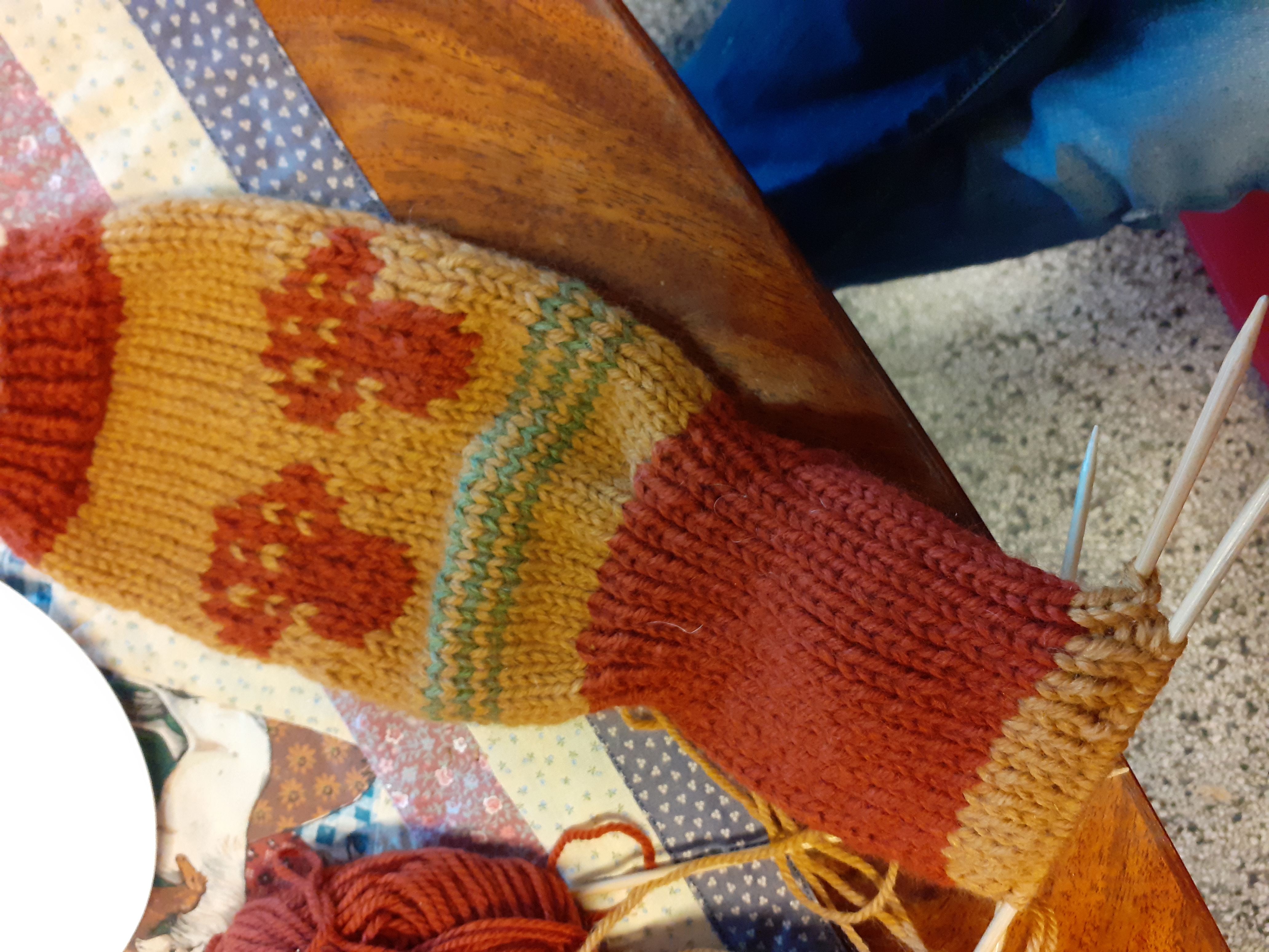 Heldigvis hadde jeg endel på lager som var tørket, så vi farget med gulrandkjuke,  fløyelspluggsopp,  blodrød kanelslørsopp,  mix med slørsopper, rødbelteslørsopp,  kanelkjuke,  duftbrunpigg,  fargelav og blærelav.
